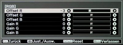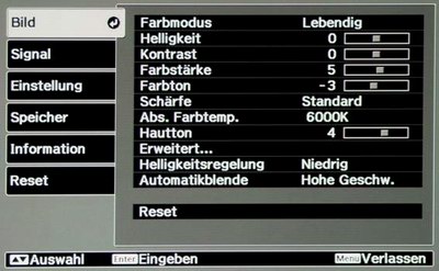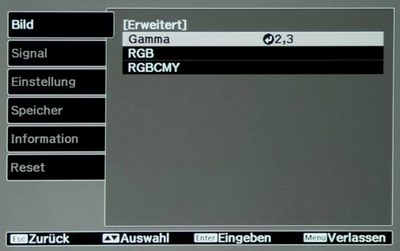 2. Aktivieren Sie das Bildmenü und passen die Einstellwerte gemäß der folgenden Liste / Bilder an: