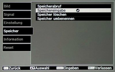 3. Speichern Sie die vorgenommen Einstellungen in einer der Speicherbänke: