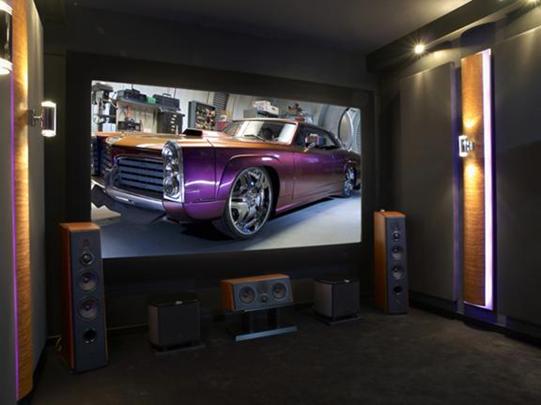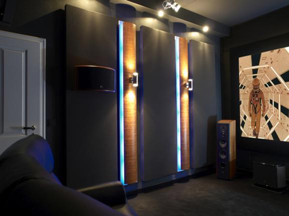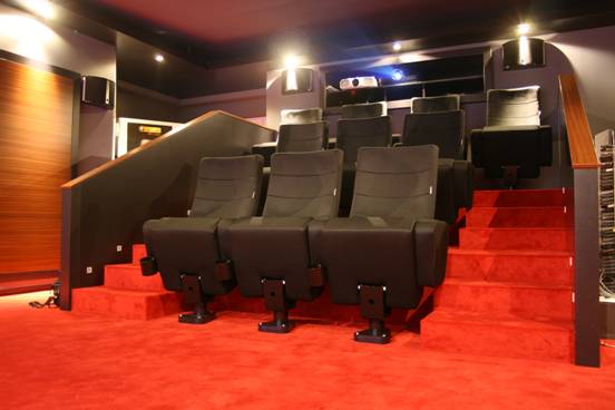 Wie die Fotos beweisen, kann ein bildoptimierter Raum trotz seiner dunklen Grundfärbung (zur Minimierung des Streulichtes) innenarchitektonisch ansprechend gestaltet werden. Unnötig zu erwähnen, dass ein gehöriges Maß an Erfahrung und technischem Verständnis notwendig ist, um derart erstklassige Konzepte umzusetzen.