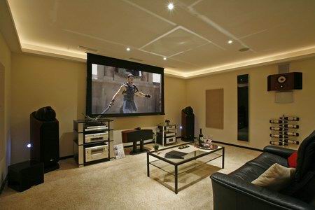 Wie bei allen Räumen ist es schlichtweg umwerfend, wie elegant sich die Kombination aus Fernseher und Projektion in einem Raum integrieren lässt, wenn man auch die Deckengestaltung entsprechend mit einbezieht: