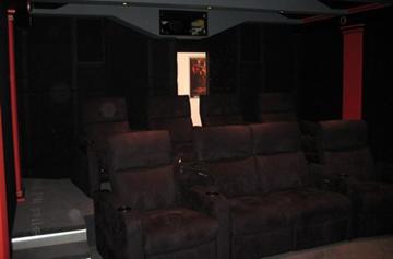In dunklen Farben gehalten, aber dennoch elegant und hochwertig lässt der Raum die wahren Bildqualitäten eines jeden Großbildprojektors vollständig zur Geltung kommen. Daher ist dieser Raum auch ideal für Shootouts und Direktvergleiche verschiedener Beamermodelle – kein Streulicht beeinflusst den Inbild-Kontrast.