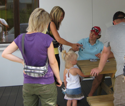 Sogar Prominenz war anwesend: NHL Eishockeytorwart Jonas Hiller ließ sich auch schon ein Heimkino einrichten und gab fleißig Unterschriften