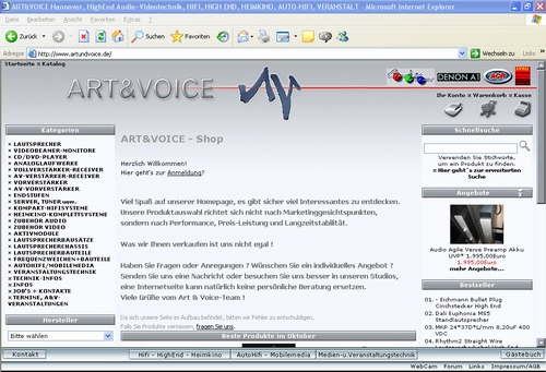 Nicht nur das Ladenlokal ist ungemein vielseitig und komplex, auch die offizielle Webseite von Art & Voice. In verschiedene Themenbereiche unterteilt findet hier der Interessent die riesige Produktpalette, Dokumentationen und Kommentare rund um alles, was mit Bild und Ton zu tun hat. Das Beste ist, die meisten Internetshops listen einfach nur riesige Produkt-Portfolios auf, ohne diese auch vorführbereit zu haben. Bei Art & Voice kann man so gut wie alles „Live“ im Geschäft erleben und ausprobieren. Wenn wir alleinig alle Lautsprecher abgebildet hätten, wäre dieser Bericht vollkommen ausgeartet.