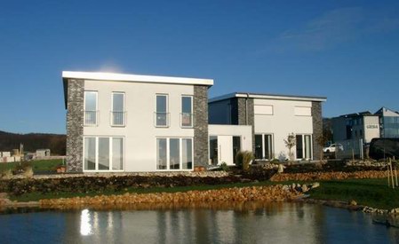 Auf der linken Seite ist das neu errichtete Wohnhaus der Familie. Und in der Mitte der Durchgang zum Heimkinokomplex, welcher ganz alleine für die Heimkinotechnik, Lager und die Show-Rooms errichtet wurde. Und das alleine durch Fleiß und viele Jahre harter Arbeit. Und wer ein angenehmes Ambiente schätzt, kann sich auf eine Heimkinoberatung am hauseigenen Teich freuen.