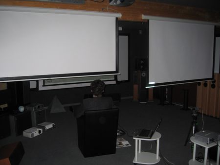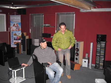 Was mich ebenfalls bei meinen wiederholten Besuch in Hilter bei Osnabrück freute, war, dass auch Jörg Michels für den Termin extra von der Mosel angereist ist (Bild oben, rechts). Die beiden bilden ein klasse Team. Beide „leben“ Heimkino und vermitteln dieses auch. Weiterhin besitzen beide ein Fach-Knowhow, welches man nur selten anfindet. Sie brauchen keine Anzüge und Krawatten, um gute Heimkino-Berater zu sein, sie sind es einfach.