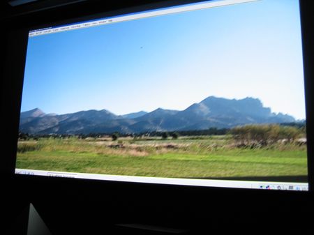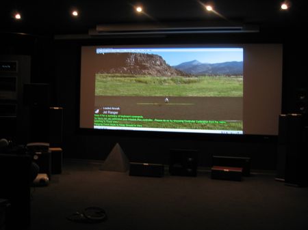Nachdem wir die Technik und die Produkt- und Lösungspräsentation des Hauses begutachtet hatten, ließen wir die großen Bilder auf uns einwirken. Ich muss zu meiner Schande gestehen, dass ich das Kamera-Stativ vergessen hatte. Ich bitte, manch kleine Unschärfe im Bild zu entschuldigen. Das lag also an uns, nicht an der Projektion, die war mehr als scharf – sie war groß und mächtig. ;-)