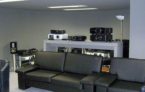 Das hier installierte Equipment erlaubt es dem Heimkino-Interessenten, hunderte(!!) von Projektor / Verstärker / Lautsprecher Kombinationen zu testen. Bei diesen gegebenen Möglichkeiten ist es praktisch ausgeschlossen, dass man nicht das passende findet.