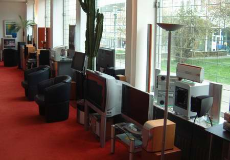 Alleine schon die hohe Anzahl an Flachbildschirmen reicht aus, um den Interessenten stundenlang in den Bann der Materie zu ziehen. Genügend Zeit sollte man auf jeden Fall mitbringen: