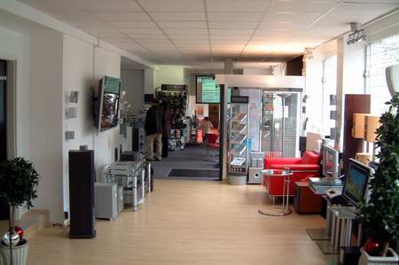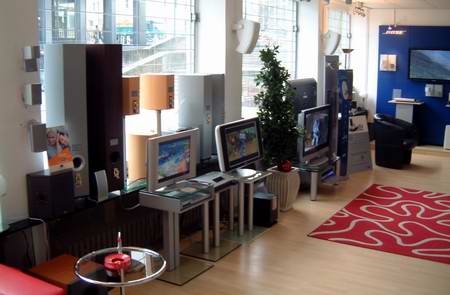 Schon vor dem Betreten des Geschäftes hat hier der Besucher die Möglichkeit, einen Blick auf unzählige Komponenten aus dem Heimkinobereich zu werfen, seien es Großbild-TVs, Audioanlagen, Projektoren oder Zubehör.