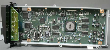 Die Signalelektronik wirkt wie eine riesige PC-Karte und ist im Aufbau ebenfalls ungewohnt komplex. Das Herz der Skalierung und des De-Interlacings ist der VXP-Videoprozessor von Gennum, der auch im Profibereich Einsatz findet.