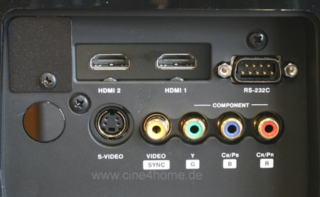 Auf den neuesten Stand gebracht wurden die digitalen HDMI-Eingänge des Projektors, die nun dem 1.3 Standard entsprechen. Damit stehen auch für Deep-Color und dem xvYCC Farbraum die Türen offen, auch wenn entsprechende Filmsoftware nach wie vor nicht in Sicht ist. Der Projektor bietet gleich zwei HDMI-Eingänge, so dass auch mehrere Geräte zeitgleich digital angeschlossen werden können. Neben den Digitaleingängen sind die üblichen Analogvarianten, Komponente (YUV), S-Video und Composite vorhanden. Zu bemängeln ist an dieser Stelle, dass jeder Eingang nur einmal vorhanden ist. Auch verfügt der Projektor über keinen separaten VGA (RGB)- Eingang, so dass zum Anschluss eines PCs auf den digitalen Eingang zurückgegriffen werden muss. Hier hätte der Hersteller ein wenig "großzügiger" sein können, denn auch heute hat noch nicht jeder PC oder gar Laptop einen digitalen Bildausgang. Immerhin unterstützt der HD100 nun auch gängige PC-Auflösungen. Erfreulich ist die flexible Video-Signalunterstützung: 480i/p, 576i/p, 720p60/50, 1080i60/50, 1080p60/50/24 kann der Projektor verarbeiten. Gerade die 1080p/24 Verarbeitung (über HDMI) wird für Perfektionisten zunehmend unverzichtbarer, sie erfolgt beim HD100 (wie auch schon beim HD1) problemfrei. Die eingehende Frequenz von 24Hz wird intern verdoppelt und ruckelfrei mit 48Hz ausgegeben. Damit wird der originale Kino-Look erhalten.