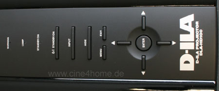 Eine Überarbeitung war aber auch nicht nötig: Die Fernbedienung ist übersichtlich strukturiert und bietet sinnvolle Tastenbelegungen. So sind verschiedene Presets sowie alle Eingänge direkt per Tastendruck abrufbar. Gleichzeitig ist das Steuerkreuz großzügig gestaltet. Bei Bedarf können alle Tasten elektrisch beleuchtet werden, so dass die Ablesbarkeit auch in dunklen Räumen gewährleistet ist. Die Reichweite des Infrarotgebers ist absolut vorbildlich und erlaubt eine zuverlässige Bedienung auch in großen Räumen bei Sitzpositionen vor oder hinter dem Projektor.