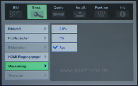 Verbessert wurden auch die Overscan-Eigenschaften des Projektors. Während der HD1 nur eine Maskierung des Bildes bietet, kann beim HD100 zusätzlich der Overscan eingestellt werden. Eine Kombination aus Overscan und Maskierung gewährleistet eine optimale Größenanpassung.