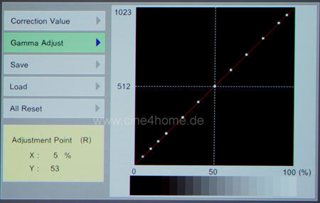 In zwölf verschiedenen Punkten kann man nun den Gammaanstieg individuell justieren, von dunklen Bereichen nahe an Schwarz bis zu hellen nahe an Weiß. Mit diesem System ist somit sowohl eine weiterführende Gammakorrektur als auch eine Justage der Farbtemperatur möglich. Wie gut dies in der Praxis funktioniert, werden wir im Bildtest untersuchen.