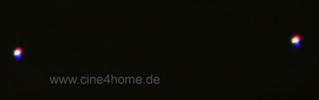 Doch ein so großer Farbraum hat auch Nachteile: So erscheint so mancher Ton farblich stärker gesättigt, als er sein sollte. Grund dafür ist die Blu-ray / DVD, die auf einen kleineren Farbraum abgestimmt wurde, als der Projektor verwendet. Wegen des fehlenden Color-Managements kann man dieses Phänomen nicht komplett beseitigen. Beim Thema Farbraum scheiden sich daher zunehmend die Geister: Videopuristen werden bemängeln, dass der gebotene Farbraum mehr bietet, als die Videonorm vorsieht und so gewisse Farben übersättigt wirken. Manche Filmfans hingegen sehen gerade im eingeschränkten Farbraum einen störenden Kompromiss zum Kinooriginal, das ebenfalls einen wesentlich größeren Farbraum aufweist. Man könnte es beiden Parteien "Recht machen", wenn man im HD100 verschiedene Farbraum-Presets oder ein Color-Management zur Kalibrierung integriert hätte. Beides hat man leider versäumt...