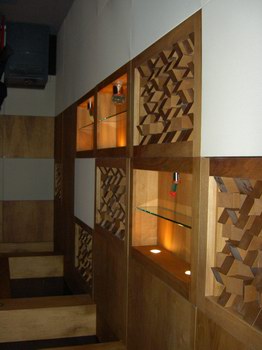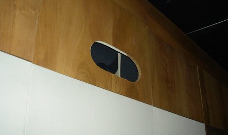 Die Fotos, die auf die Schnelle im abgedunkelten Raum entstanden, können dabei den Live-Aha-Effekt des Vorführraumes in keiner Weise ersetzen. Nirgendwo war störende Technik auszumachen, stattdessen beeindruckten edle Details der Wände.
