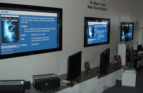Absolutes Highlight der gut besuchten Messe (siehe Bild oben) waren für uns nicht unbedingt die vielen "offiziellen" Preisträger, sondern der Stand der Image Vertriebs GmbH, die diesjährig keine Kosten und Mühen scheute, öffentlich zu zeigen, was für sagenhafte Wohnraumintegrationen von kompletten Heimkinos möglich sind. Ausgestellt wurde die komplette Runco-Produktpalette, von der kostengünstigen Projektoren-Einstiegsvariante, über Flachbildschirme bis hin zum High-End 3-Chip DLP Projektor.