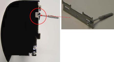Dafür werden die gelieferten Haltebleche an die Wand gedübelt (Bild unten rechts) und anschließend der gesamte Rahmen eingehängt (Bild unten links).