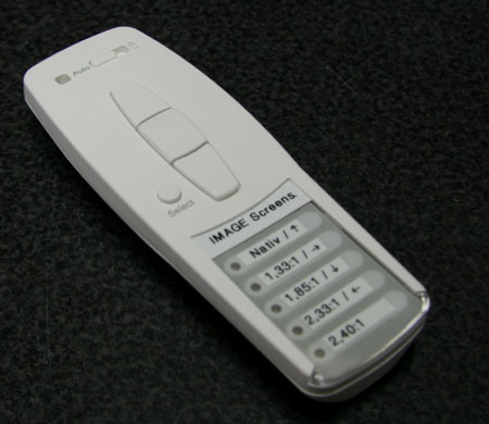 Die Steuerung erfolgt praktisch über eine Funkfernbedienung. Mit Hilfe der Auswahltasten selektiert man das gewünschte Format und schon fahren die Maskierungstücher in die gewünschte Position: