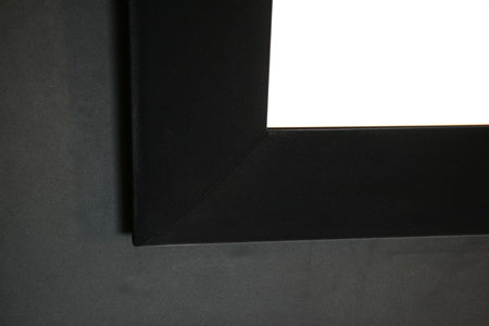 Der Rahmen schluckt das Blitzlicht unserer Kamera nahezu vollständig. Im dunklen Kinoraum erscheint er somit absolut unsichtbar schwarz.