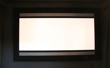 Schon hängt die Leinwand, es fehlt nur noch der schwarz beflockte Deckrahmen. Doch bevor wir den aufsetzen, machen wir noch einen kompletten Funktionscheck, indem wir alle Bildformate durchgehen:
