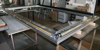 Die Grundprofile waren bereits zugeschnitten und zusammengesetzt, auch die Wellen mit den Motoren für die Maskierung sind schon montiert.