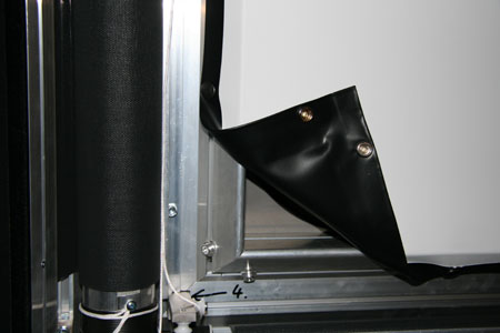 Weiter geht es mit der Montage der Umlenkungen für die Zugseile am Rahmen der Leinwand.