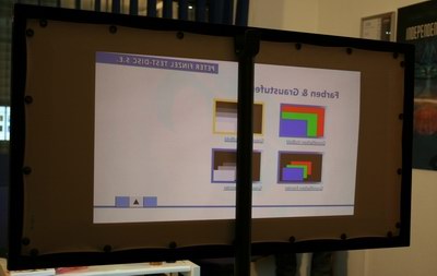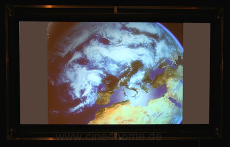 Im Screenshot oben ist zu erkennen, wie das selbe Bild auch von der Rückseite zu erkennen ist. Zwar ist das Bild deutlich dunkler als auf der Vorderseite, aber es dokumentiert den Teil, der nicht zum Zuschauer reflektiert wird, sondern durch die Leinwand hindurch scheint. Dieses Restlicht kann den Raum hinter der Leinwand zusätzlich beleuchten, ein unerwünschter Effekt.
