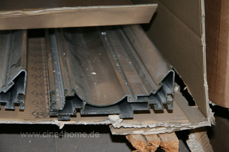 Weiter geht es mit den vier Maskierungen, die dunkelgrauen Bahnen bekommen an der Seite zur Bildmitte eine zweiteilige Aluminiumschiene zur Führung.