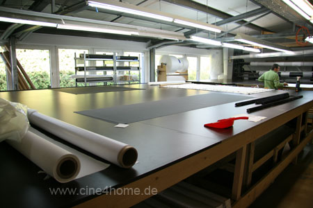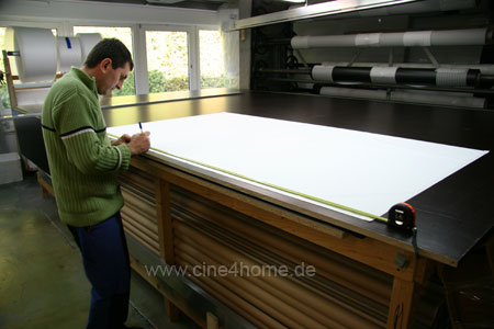 Da ließen wir uns nicht zweimal bitten. Wie unsere Stammleser wissen, wollen wir stets alles ganz genau wissen und da kam es uns gerade recht, der Produktion unserer Testleinwand persönlich beizuwohnen...