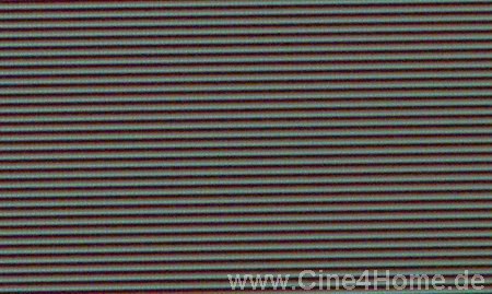 2.4 Schärfe / Konvergenz (Know How Link hier) Ebenfalls viel diskutiert sind Schärfe und vor allem Konvergenz von Projektoren. Wie bereits im ersten Kapitel erläutert, sind gewisse Konvergenzverschiebungen bei einem 3-Chip Projektor stets unvermeidbar. Sie sollten sich aber in einem nicht störenden Rahmen halten. Bei unserem Testgerät wurde dieser Rahmen über die gesamte Bildfläche eingehalten. Es zeigte sich lediglich eine minimale Verschiebung von Rot, die aber schon aus geringen Betrachtungsabständen nicht auszumachen war.