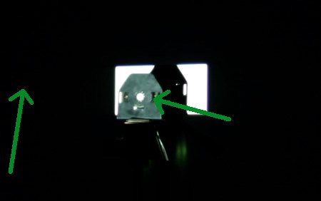 2.2 Semi-schwarzer Raum Als Kompromiss betrachten wir einen Raum, bei dem eine Raumhälfte dunkel ausgkleidet ist. Besonders wichtig ist die Abdunklung der Decke nahe an der Leinwand, weil hier besonders viel Streulicht provoziert wird: