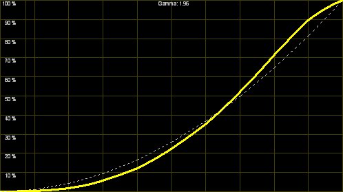 Unsere Messung ergibt einen Anstieg von 2.5, was nahe an der machbaren Obergrenze liegt. Dadurch wird der Kontrast zwischen hellen und dunklen Bildinhalten besonders betont, je nach Bildinhalt steigt der Plastizitätseindruck. Ein derart steiles Gamma lässt sich aber nur in optimiert dunklen und schwarzen Räumen sinnvoll realisieren, da die Durchzeichnung vor allem in dunklen Bereichen sehr subtil ausfällt.