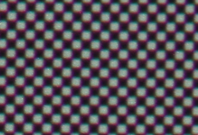 In vielfacher Vergrößerung sieht man die Farbsäume der Pixel, doch fallen diese gleichmäßig aus und sind nur aus absolut nächster Nähe zu erkennen.