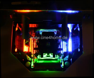 Vor- und Nachteile des Bildes im Schnellüberblick: Ein weiterer Vorteil der 3-Chip Technik ist die Farbmischung: Sie findet tatsächlich im Projektor statt, so dass die Farben zeitgleich beim Betrachter landen und so frei von jeglichen Artefakten sind. Dies kommt einer natürlichen Bilddarstellung sehr entgegen. Nach zwei Vorteilen kommen wir nun zu den Nachteilen: LCD Projektoren erzeugen die verschiedenen Helligkeitsstufen durch Polarisation des Lichtes. Als besonders schwierig erweist es sich dabei, das Licht komplett zu blockieren, um Schwarz zu ermöglichen. Je nach Güte der Polarisationsfilter erscheint bei den meisten LCD-Projektoren schwarz nicht als schwarz, sondern eher als dunkles Grau. Ein nicht optimaler Schwarzwert beeinträchtigt den Dynamikumfang des Projektors, die Darstellung von dunklen Szenen und letztendlich den Kontrast. Aus diesem Grund galt die LCD-Technik lange Zeit als eher kontrastschwach mit einem durchschnittlichen nativen Kontrastverhältnis von ca. 1000:1. Neue Modelle, besonders von LCD-Hersteller Epson, haben aber bewiesen, dass durch spezielle Polarisationsfilter ein nativer Kontrast von 3000:1 bis 4000:1 kein Problem darstellt. Allerdings sind diese neuen kontraststarken Varianten derzeit nur in höheren Preisklassen zwischen 2000.- und €3000.- zu finden. Ebenfalls den Kontrast beeinflusst die Durchleuchtung der LCD-Einheiten wie ein Dia: In den Gläsern, auch im anschließenden Prisma, das die drei Grundbilder wieder zusammenfügt, entsteht Streulicht, so dass der InBild-Kontrast heller Szenen leicht beeinträchtigt wird. Nahe beieinander liegende Hell-Dunkel-Übergänge werden bei der LCD-Technik im Kontrast nicht perfekt dargestellt. Eine weitere, durch die Dia-artige Durchleuchtung begründete Eigenschaft ist der Abstand der Pixel zueinander: Die einzelnen Ansteuerleitungen für jeden einzelnen Pixel liegen stets im Lichtweg (werden also mit "durchleuchtet") und zeigen sich als schwarze Trennlinien zwischen den Pixeln auf der Leinwand. Tatsächlich machen sie über 40% der Bildfläche aus. Wie auffällig sie im Bild sind, hängt von der nativen Auflösung des Projektors ab: Einfache SVGA oder XGA Projektoren zeigen relative große Pixel und damit eine relativ große Rasterung mit sichtbar schwarzen Trennlinien. Bei FullHD Projektoren hingegen sind die Pixel und Trennlinien derartig klein, dass sie selbst aus kürzeren Betrachtungsabständen nicht mehr wahrnehmbar sind. Das Thema Pixelstruktur wird somit durch die Erhöhung der nativen Auflösung gelöst. LCD-Projektoren gelten zwar als Digitalprojektoren, doch eigentlich handelt es sich um eine analoge Technik: Die Flüssigkeitskristalle, die die Polarisation und damit die Helligkeitsabstufungen im Bild erzeugen, werden durch analoge Spannungswerte "gekippt". Je höher die Spannung, desto stärker die Bewegung der Kristalle. "Analog", was spontan eher nach alter Technik klingt, bringt in der Bilddarstellung aber Vorteile: Durch die analoge Ansteuerung sind Farbnuancen fein justierbar und damit viele minimale Helligkeitsstufen gut realisierbar. Dies macht sich vor allem bei Signalverarbeitungen mit hoher Bit-Tiefe bemerkbar, da hier keine Farbreduktion provoziert wird. Abschließend wollen wir auf die Beständigkeit der Bildqualität eingehen. Lange Zeit wurde die Haltbarkeit von LCD-Panels in Frage gestellt. Tatsächlich zeigen einfache Modellvarianten eine gewisse Alterung im Laufe der Lebensdauer: Die Polarisation des Lichtes wird durch die Dauerbeanspruchung im Laufe der Zeit beeinträchtigt. Eine ungleichmäßige Farbdarstellung im Bild (Shading) sowie ein Kontrastverlust sind nach mehreren Tausend Stunden die Folge. Aber auch hier haben die Hersteller reagiert: LCD-Panels neuester Generation (D6 oder D7) sind anorganisch und daher laut Hersteller langzeitstabil. Vergleichbare Technologien aus anderen Bereichen machen dies glaubwürdig.