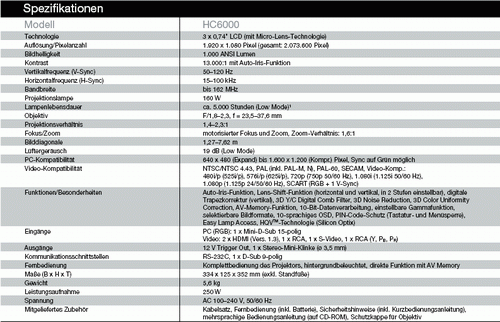 Und auch Mitsubishi geht den konservativen Weg, der die Interessenten weitgehend im Dunklen lässt. Besonders in der Maximalhelligkeit zeigen sich Abweichungen, unter Berücksichtigung der akkuraten Farbdarstellung ist der Projektor deutlich dunkler, als es de Werksangabe vermuten lässt. Beim Kontrast wird hingegen ehrlich angegeben "mit Auto-Iris Funktion" und der veröffentlichte Wert wird bei richtigen Farben auch in der Praxis annähernd erreicht. Nicht erwähnt wird, wie bei fast allen anderen auch, dass der Eco Modus Licht kostet. Im Falle des HC6000 ist dies aber zu verzeihen, denn selbst im Hi-Modus ist er leiser als seine Konkurrenz im Eco-Modus. Beim HC6000 handelt es sich klar um einen konsequent auf Heimkino optimiertes Gerät, was auch an vielen anderen Aspekten neben Helligkeit und Kontrast deutlich wird. Weniger geeignet ist er für Projektionen in nicht abgedunkelten Räumen, dann muss man Abstriche in der Farbneutralität eingehen.