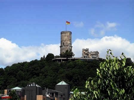 Das Bild zeigt eine typische Außenaufnahme, bestehend aus zahlreichen Naturtönen (Himmel, Pflanzen), sonstigen Farben (Gebäude) und farblosen Elementen (Wolken). Ist der Projektor richtig der Videonormen kalibriert, so wird er dieses Motiv naturgetreu reproduzieren.