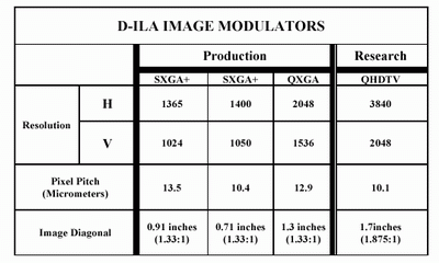 Derartige Auflösungen sind für Heimkino-Anwendungen fast schon überproportioniert. Dennoch: In Zukunft wird die D-ILA Technologie in der Lage sein, 35m Zelluloid Film verlustfrei darstellen zu können.