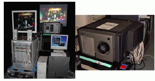 Doch abgesehen von der Auflösung und der "Pixel"-Größe unterscheiden sich die Systeme nicht. Die LCOS Devices sind fest neben den PBS platziert. Die drei Projektionsbilder der einzelnen Grundfarben werden durch ein Prisma wieder zusammenkombiniert und durch die Optik auf die Reise zur Leinwand geschickt.