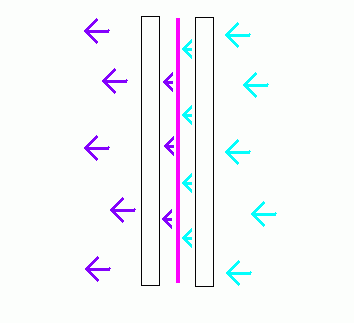 1.2 Veredelung des Filtermediums Das Licht verlässt den Projektor und gelangt an die erste Glasschicht (andere Dichte als Luft). Nach Passieren des Glases gelangt es wieder an die Luft, da die Folie nicht glatt mit dem Glas abschließt. Beim Eintritt in die Folie erhalten wir wieder oberflächenbedingte Reflektionen. Das Licht verlässt den Farbfilter und muss nach weiterer Luftschicht erneut eine Glasscheibe passieren, und wieder verlieren wir einen Teil durch Reflektionen, die sich zudem unkontrolliert im System verteilen könnten. Wie man schnell einsieht, ist so eine "Primitiv-Variante" keine Lösung, im Gegenteil, man handelt sich noch zusätzliche Nachteile ein. Auch reflektionsärmeres Glas würde hier keine Abhilfe schaffen.