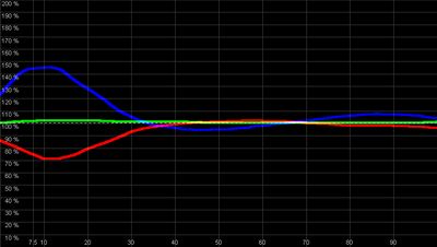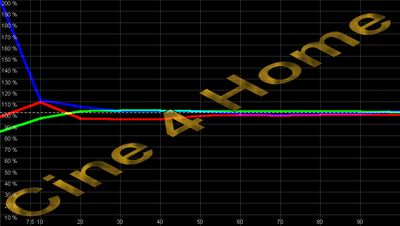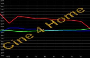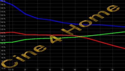 Kurvenverhalten. Besonders negativ ist dabei das inhomogene Verhalten. Die Farbtemperatur ändert sich mit steigender Helligkeit. Bei einer Sonnenaufgangszene im Film ändert sich z.B. die Farbcharakteristik des Bildes, der natürliche Eindruck geht verloren, die Originalfarben des Kinos werden nicht reproduziert. Derartig hohe Abweichungen sind objektiv in -jedem- Raum und in Verbindung mit -jedem- DVD-Player zu beobachten. Eine Grautreppe wirkt -nirgendwo- homogen. Die anderen Glieder der Heimkinokette wirken sich statistisch minimal im Vergleich zur Projektoren-Ungenauigkeit aus und wenn, wesentlich linearer. Dazu mehr im Teil III unserer Bildkalibrierungsreihe. Dementsprechend sind in jedem Raum objektiv wesentliche Verbesserungen