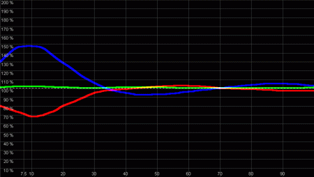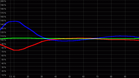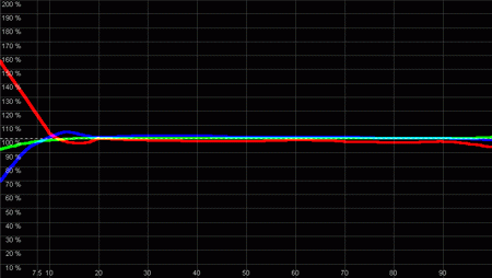 Die Ergebnisse zeigen: Die durchschnittliche Spannungs-Abweichung beträgt lediglich 0,56%, maximal 1,21%. Die grafische Darstellung zeigt, wie ähnlich sich die ansonsten so unterschiedlichen DVD-Player in Sachen Gammaverteilung doch sind: