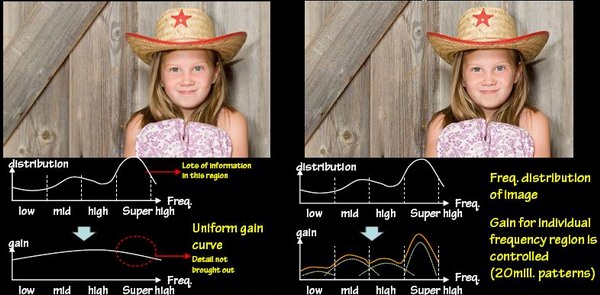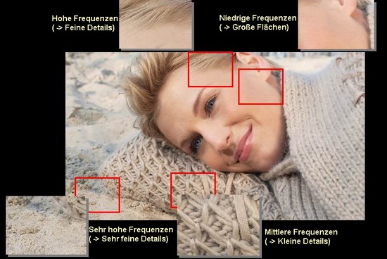 Eine Mustererkennung soll dabei helfen, gewisse Strukturen zu erkennen und entsprechende Schärfeanhebungen zuzufügen. Je nach Ergebnis der ermittelten Frequenzbereiche werden die Bildelemente unterschiedlichen Schärfefiltern unterzogen:
