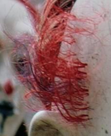 Ein umgekehrtes Bild zeigt sich in den roten „Haaren“ rechts und links, wie unsere Detailaufnahme aufzeigt.