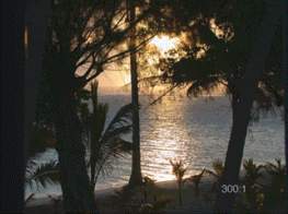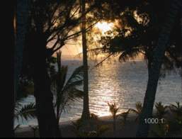 Digitalprojektion wird heute immer besser! Der grösste Schwachpunkt im Vergleich zur Röhrenprojektion ist neben Bildhomogenität und Durchzeichnung der Kontrastwert. Dieser definiert das Verhältnis vom dunkelsten bis zum hellsten Signalpegel, den ein Projektor darstellen kann. Wenn bei 800 Lumen Lichtleistung zwei Lumen Restlicht bei Schwarzdarstellung projiziert werden, liegt der Kontrast bei 800/2 , also 400:1. Um zu verdeutlichen, wie sich der Kontrastwert auf das Bild auswirken kann, hier ein schönes Beispiel: (Bei einem Vergleich der Bilder ist der Einfluss des aktuell verwendete Ausgabemediums -Bildschirm oder Ausdruck- zu beachten!) Das Original, ein Sonnenuntergang unter Bäumen. Das Bild hat räumliche Tiefe, es wirkt natürlich.