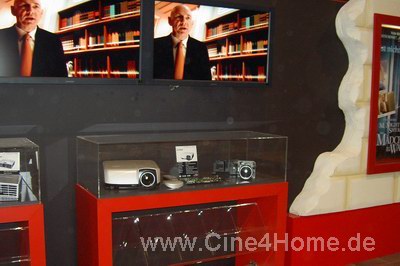 Vor dem Eingangsbereich kann man sich bereits einen technischen Überblick über den Projektor machen. Ganz nach Cine4Home-Geschmack werden die "Innereien" in einer Glasvitrine ausgestellt.