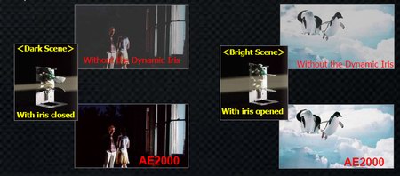 Um dem nativen Kontrast des Beamers weiter auf die Sprünge zu helfen, ist die adaptive Lichtblende weiterhin mit an Board. Sie zeigt sich mechanisch unverändert, was aber wenig überraschend ist. Die Panasonic-Variante arbeitet seit der ersten Generation (PT-AE700) in "Echtzeit", das heißt 50 bzw. 60 mal pro Sekunde. Damit bleibt sie für das Auge unbemerkt, so dass das störende Bildpumpen ausbleibt.