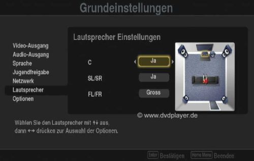 Ein wenig Geduld muss man mitbringen: Der BDP-LX70 braucht ca. eine Minute zum starten, hierbei ist es egal ob man das Gerät gerade eingesteckt hat, oder ob der Player im Standby war. Die Einlesedauer bei DVDs ist etwas langsamer als bei aktuellen DVD Playern, aber vollkommen akzeptabel. Zum einlesen einer Blu Ray werden, je nach Disc, ca. 25-35 Sekunden benötigt. Die Wiedergabefunktionen, Kapitelskip, Suchlauf, Zeitlupe funktionieren problemlos, wie man es auch von aktuellen DVD Playern gewohnt ist. Per Onscreen Display kann man sich Kapitel und Laufzeitinformationen anzeigen lassen, auch eine Bitratenanzeige ist vorhanden. Über die Taste „Home Menu“ der Fernbedienung hat man nicht nur auf das Setup des Players Zugriff. Das Menü des LX-70 ist ansprechend gestaltet und übersichtlich gegliedert. Zu jedem Punkt wird eine kurzer Erläuterung angezeigt, auch die deutsche Formulierung ist vorbildlich.