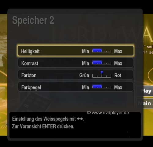 Der Player gibt 24p nur bei Filmmaterial aus, eventuell auf der Disc vorhandene Extras sind praktisch immer Videomaterial in 50/60i, hier schaltet der Player die 24p Wiedergabe wieder ab und die HDMI Verbindung muß neu aufgebaut werden, was vom angeschlossenen TV oder Projektor mit einem Bildausfall von einigen Sekunden belohnt wird. Auch die unbeliebten Warnungen und Hinweise vor dem Film sind in 50/60i. Hübsch gelöst ist auch die Konfiguration des internen Mehrkanal Audiodecoders. Eine ziemlich überflüssige Funktion ist dieser so genannte „Video Equalizer“ mit seinen spärlichen Einstellmöglichkeiten, die sich auch an jedem Fernseher oder Projektor finden. Grundsätzlich empfiehlt es sich nicht, Bildparameter an Signalquellen zu verändern.