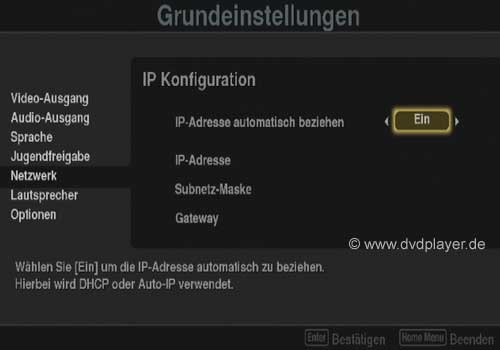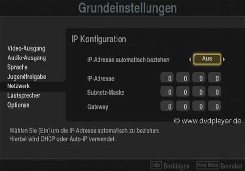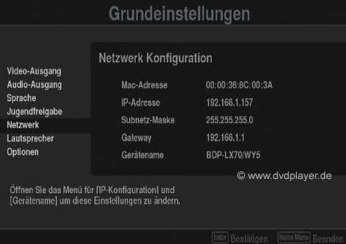 Im Menüpunkt "Netzwerk Konfiguration" sollte dann u.a. eine IP-Adresse angezeigt werden. Hat man keinen Router, sondern möchte den PC direkt mit dem Player verbinden, benötigt man ein handelsübliches, gekreuztes Netzwerkkabel. Die Netzwerkonfiguration beider Geräte muß jedoch manuell erfolgen. Neztwerkkonfiguration PC: Konfiguration Pioneer BDP-LX70: